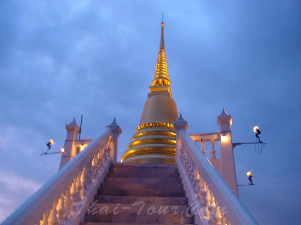 20 ปีมานี้ โดยประดับกระเบื้องเคลือบสีทองทั้งองค์ มีรั้วรอบองค์เจดีย์