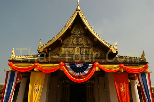 มีรูปพระอุณาโลมซึ่งเป็นสัญลักษณ์ของพระพุทธองค์ประดิษฐานบนบัลลังก์อยู่ในบุษบก