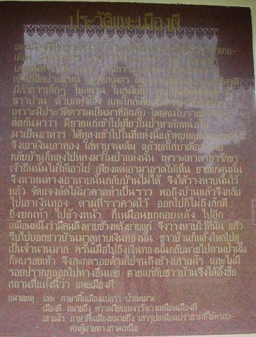 แปลว่า ป่าละเมาะ ส่วนคำว่า เมืองผี แปลว่า เงียบเหงา
