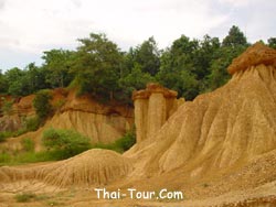 และหินทรายถูกกัดเซาะตามธรรมชาติเป็นรูปร่างลักษณะต่างๆ เช่น ดอกเห็ด