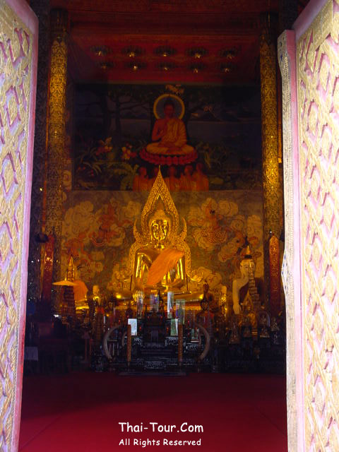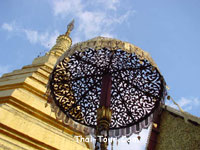 เมตร สร้างด้วยอิฐโบกปูนหุ้มด้วยแผ่นทองเหลืองลงรักปิดทอง