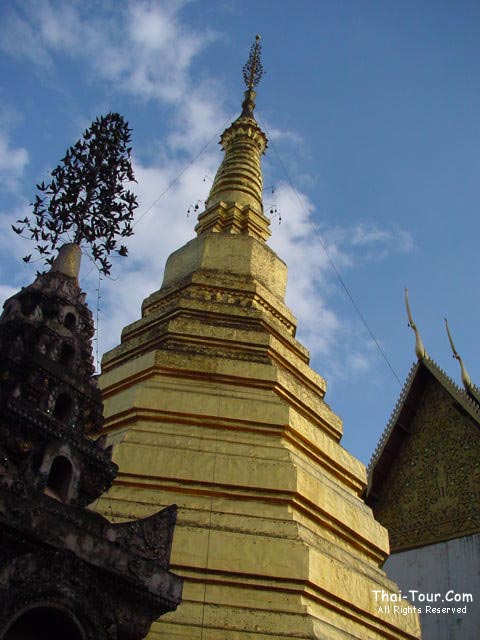 ย่อมุมไม้สิบสอง ศิลปะเชียงแสน สูง 33 เมตร ฐานสี่เหลี่ยมกว้างด้านละ 11