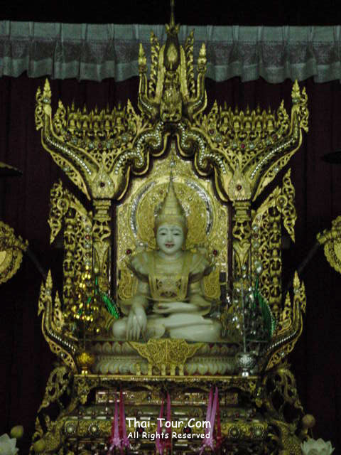 มีพระพุทธรูปหินอ่อนทรงเครื่องแบบพม่า สร้างอย่างสวยงามวิจิตรพิสดารมาก