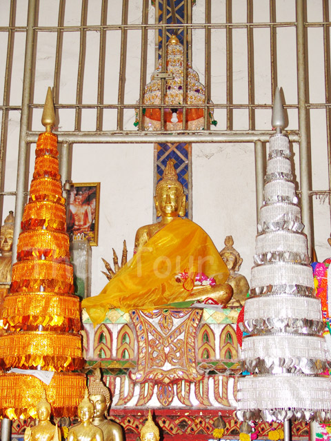 วิหารนี้ประดิษฐานพระพุทธรูปปูนปั้นปิดทอง
