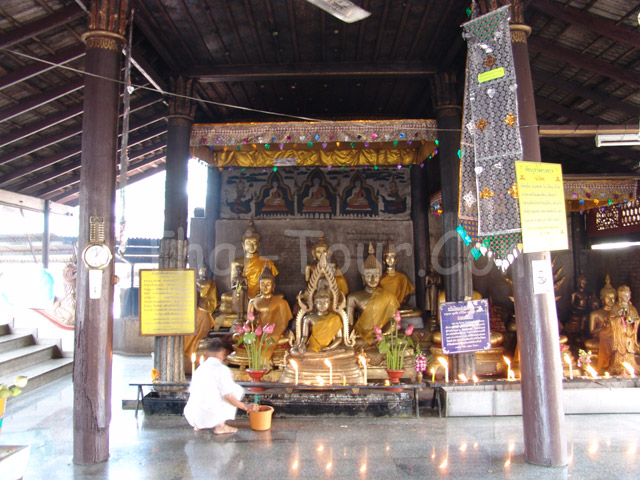 นอกจากนี้ภายในบริเวณวัดยังมีวิหารไม้เก่าแก่ที่มีลายแกะสลักไว้ไห้ชม