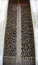 ตัวเสาประตูเป็นลายกนกใบเทศสลับลายกนกก้ามปู