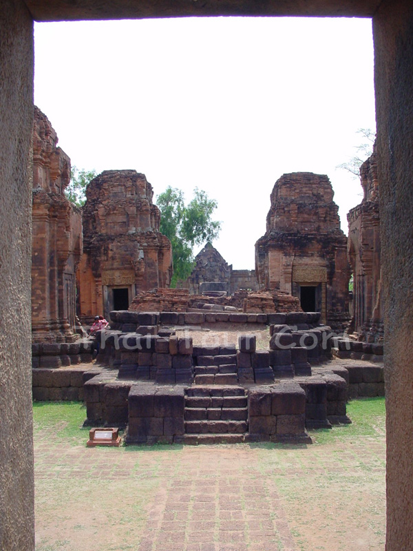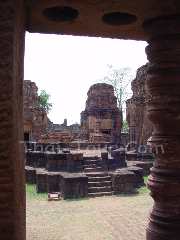 ตัวปราสาทเป็นปรางค์ 3 องค์ ก่อด้วยอิฐ ตั้งบนฐานก่อด้วยศิลาแลงต่อเนื่องเป็นฐานเดียวกัน หันหน้าไป ทางทิศตะวันออกมีประตูเข้า-ออกทางด้านหน้าอีก 3 ด้าน เป็นประตูหลอก ปรางค์ทั้งสามมีผังเป็นรูปสี่ เหลี่ยมจัตุรัสย่อมุมไม้สิบสอง องค์กลางขนาดใหญ่กว่าสององค์ที่ขนาบข้าง แต่เดิมเคยมีทับหลังประดับ จำหลักลายอย่างสวยงาม คือ องค์ทิศเหนือสลักเป็นรูปพระนารายณ์ทรงครุฑเหนือหน้ากาล ซึ่งมือยึด ท่อนพวงมาลัยแวดล้อมด้วยลายพันธุ์พฤกษา อีก 2 องค์ที่เหลือ คือ องค์กลางและองค์ด้านทิศใต้ก็มี ลักษณะคล้ายกันต่างกันที่ภาพตรงกลาง คือ ทับหลังปรางค์องค์กลางสลักเป็นรูปพระอินทร์ทรงช้างเอราวัณ องค์ทิศใต้เป็นรูปพระอิศวรทรงโค ด้านหน้าของปรางค์ องค์กลาง มีทางเดินยื่นยาวออกไป มีบันไดทาง ด้านหน้าและด้านข้างทั้งสอง