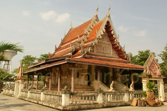กันแดดกันฝนได้ทั่วถึงจึงทำให้ภาพจิตรกรรมที่ผนังด้านนอกเลือนไปบ้าง