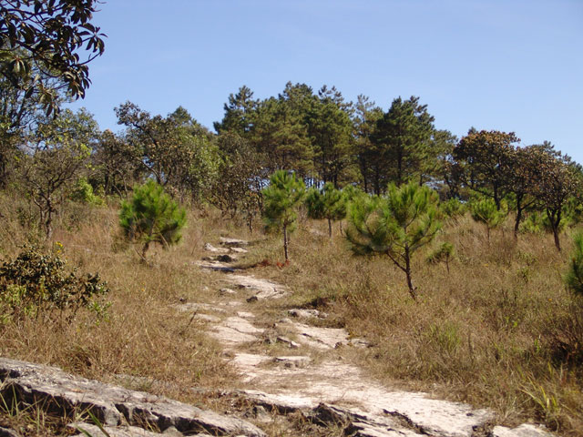 บนยอดเขาเป็นที่ราบกว้างใหญ่ มีต้นสนขึ้นสลับซับซ้อน