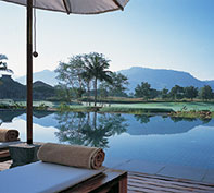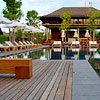 Located off the reception patio, this fashionable signature restaurant is open on three sides overlooking the lake and golf course. There is additional alfresco seating on the poolside patio. It is a contemporary Thai in design with the use of rustic and wooden elements.