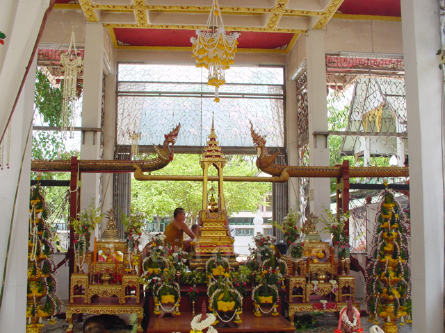 ในแท่นพิธีสรงน้ำพระ เนื่องในวันสรงกรานต์ |