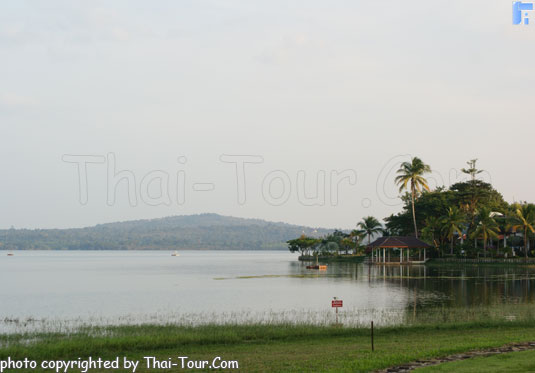 บริเวณริม ทะเลสาบ มีสวนสิรินธร ปลูกไม้ดอกไม้ประดับ