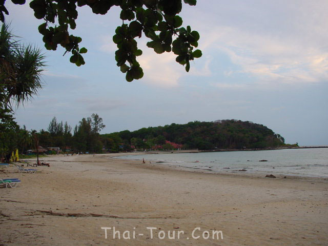 มีชายหาดที่ทรายไม่ขาวมากนักแต่มีบรรยากาศที่น่าพักผ่อน