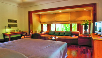 air-conditioned bedroom equipped with king size or twin beds, luxurious