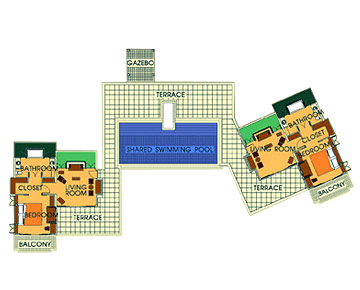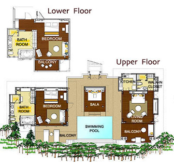 The Pool Villas One, Two & Three Bedrooms are situated some 60 meters