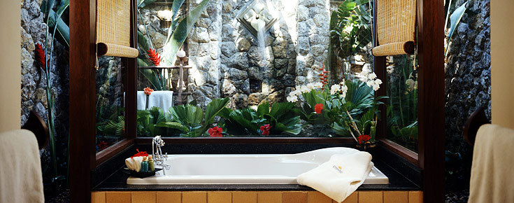 The bathroom either opens onto the bedroom or overlooks the garden. Very