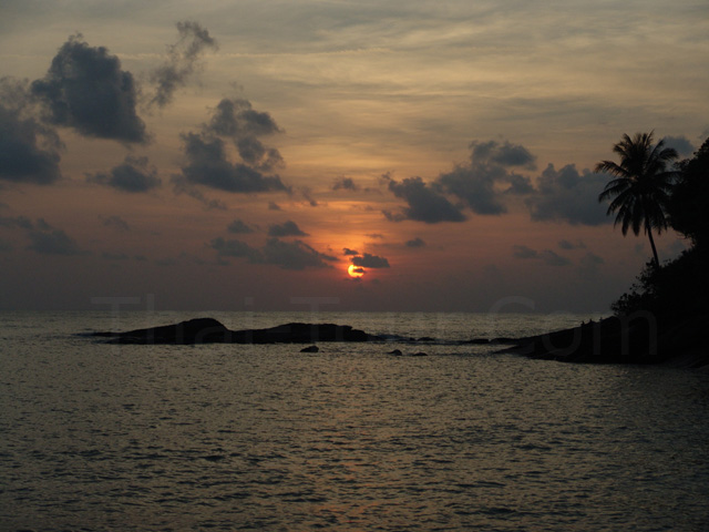 พระอาทิตย์ขึ้นที่หาดในเพลา