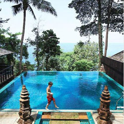 Swimming Pool with panoramic view of Khao Lak Bay and small sun
