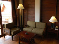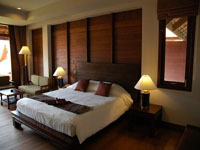 beds have large living space with polished wood floor, rich Thai fabric,