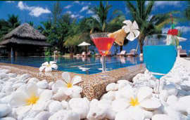 The swimming pool is the centrepiece of the resort, next to the beach. Wooden decking around the pool, son chairs and parasols, ensure and idyllic spot to bathe in sun and cool off in the pool. The poolside bar serves snacks and refreshments throughout the day--no need to leave the comfort of your sun chair.