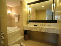 resorts pool and garden. Deluxe bathrooms feature bath tubs and showers. One
