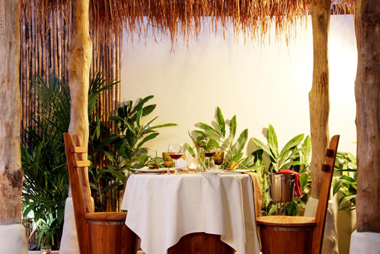 private plunge pool and a sala (an outdoor living area with a thatched roof)