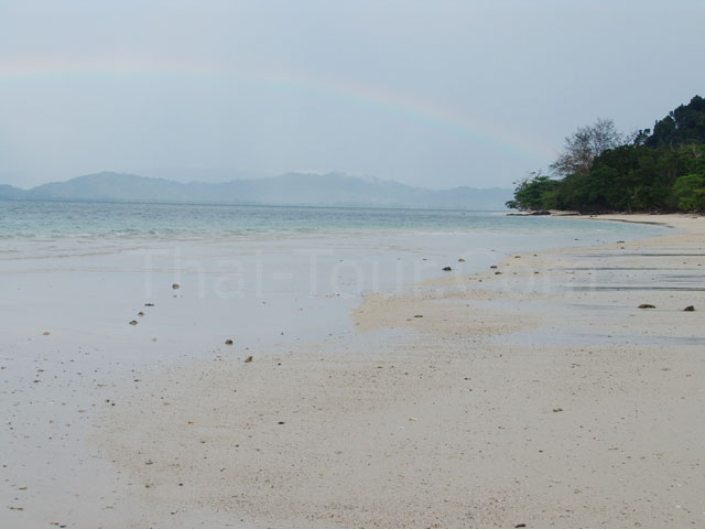 มีหาดทรายเพียงด้านเดียว ประกอบด้วยเกาะบริวารอีกหลายเกาะ