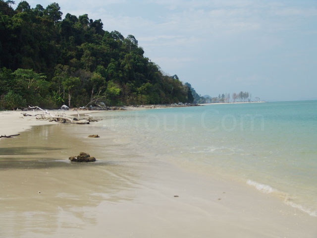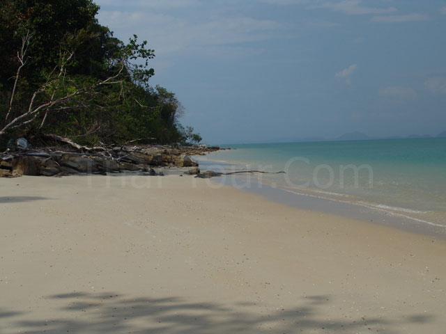 มีหาดทรายขาวบริสุทธิ์อยู่เกือบรอบเกาะ
