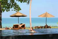 A beautifully inviting, glistening fresh water overflow pool that melts