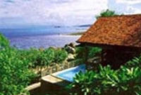 The "Lipa-Noi" suite is in the studio suite style but it is the most remotely located house on the premises and is the only one not to have a separate children's room. The entire interior is open-plan and flows onto balconies in front and to the sunset-side where there is a little tub to cool oneself while sipping a cocktail. This suite is very popular and often books months in advance. It received an extensive renovation in 2000 which includes a hugely expanded balcony to take full advantage of the panoramic views.