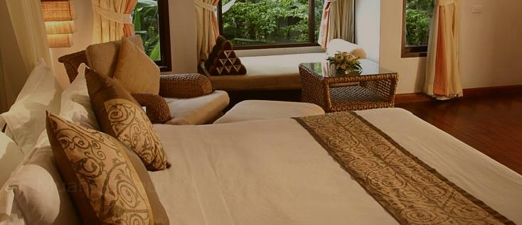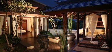 area in rain forest garden; offering both indoor and outdoor bathroom