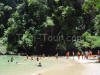 ปากถ้ำออกมาอีกด้านหนึ่งจะเป็นหาดทรายขาวสะอาดล้อมรอบด้วยหน้าผา