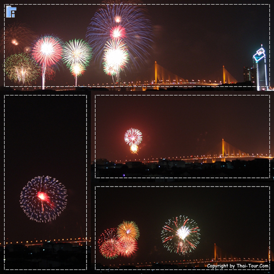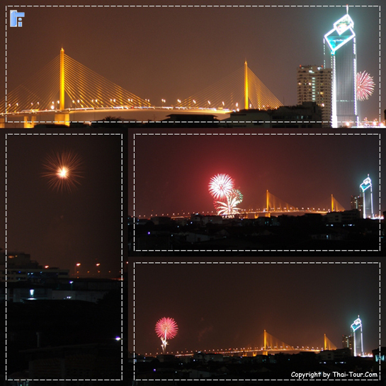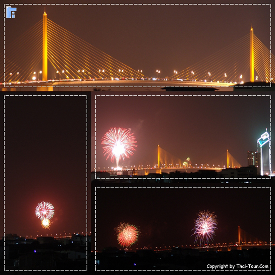 ภาพพลุวันเฉลิม 5 ธันวาคม 2550 บนสะพานพระราม 9 (สะพานแขวน)