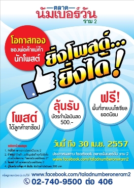 ตลาดนัมเบอร์วันราม 2 ชวนพ่อค้าแม่ค้านักโพสต์ร่วมกิจกรรมเฟสบุ๊คยิ่งโพสต์ ยิ่งได้