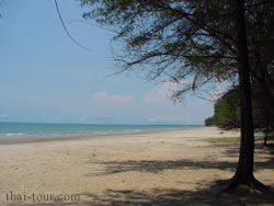 ตั้งอยู่ที่ตำบลไม้ฝาด ห่างจากตัวเมืองตามถนนสายตรัง-สิเกา-ปากเมง ตามทางหลวงหมายเลข 4046–4162 ระยะทาง 38 กิโลเมตร เป็นหาดที่สวยงามและเงียบ เป็นรูปพระจันทร์ครึ่งเสี้ยวยาวประมาณ 5 กิโลเมตร มีป่าสนตามธรรมชาติขึ้นอยู่สวยงาม กลางทะเลมีเกาะน้อยใหญ่สลับซับซ้อนกันมองดูลักษณะคล้ายคนนอนหงายอยู่ในทะเล