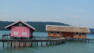 บ้านกลางน้ำ สีสันสดใส บนหาดทรายขาว