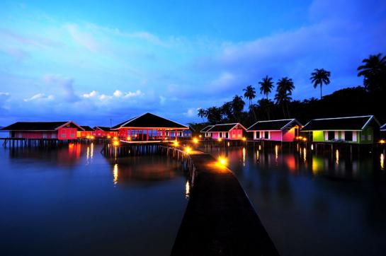 บ้านพักกลางน้ำ ยามค่ำคืน