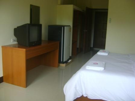 ภายในห้องพักกว้างขวาง ขนาด 4x7.5 เมตร เตียง 6 ฟุต ตู้เสื้อผ้าขนาดใหญ่ ชั้นวางของ โต๊ะขนาดใหญ่ โต๊ะขนาดเล็ก เครื่องทำน้ำอุ่น เคเบิลทีวี ตู้เย็น บริการอินเตอร์เน็ตเล่นฟรีสำหรับผู้พัก