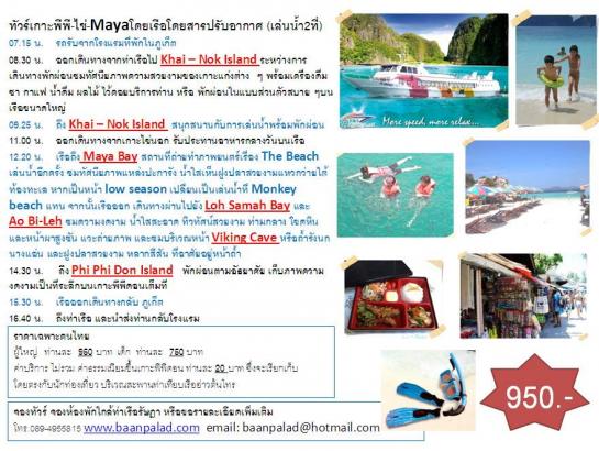 ทัวร์พีพี-มาหยา-เกาะไข่ เต็มวันเรือspeed boat 1400/คน