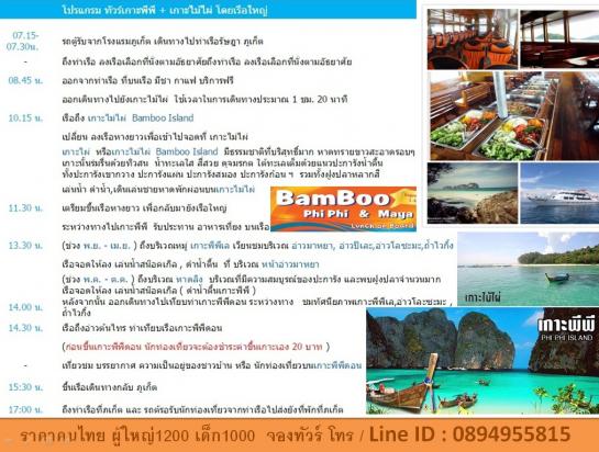 ทัวร์พีพี-แบมบู (เกาะไม้ไผ่) เรือเฟอร์รี่ พร้อมอาหารกลางวันบนเรือ และรถรับส่งจากภูเก็ต (เมือง ป่าตอง ) ผู้ใหญ่1200/ท่าน เด็ก1000