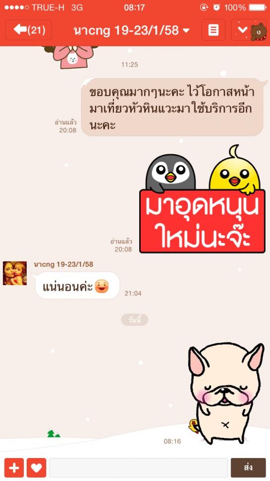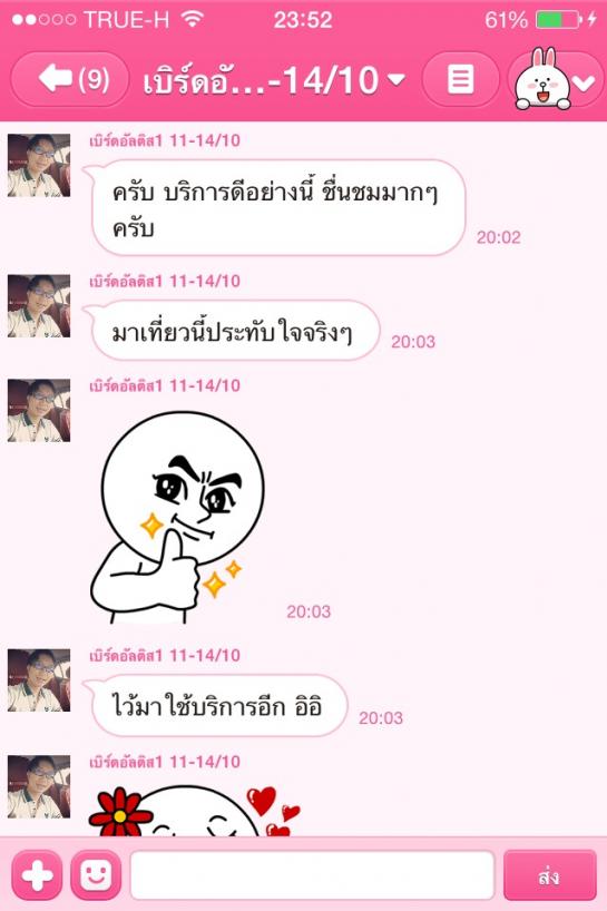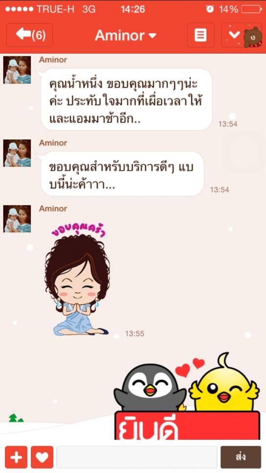 เสียงตอบรับจากลุกค้าที่มาใช้บริการ ขอบคุณลูกค้าทุกท่านที่มาอุดหนุนนะค่ะ น้ำหนึ่งพร้อมบริการและปรับปรุงการบริการให้ดีที่สุดค่ะ ยินดีให้บริการค่ะ 080-9795248 และเบอร์สำรอง 080-9795247 หรือ ID Line: nbnb2526 คะ/ขอบคุณคะ