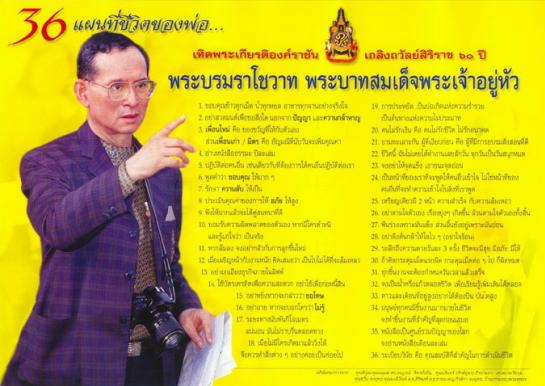 คนไทยรักกัน สามัคคีกัน เพื่อพ่อหลวง ในหลวงพระองค์ทรงงานหนักและเหนื่อย เพื่อราษฎรของพระองค์ให้อยู่เย็นเป็นสุข พันปีหมื่นวันรักในหลวงตลอดไป ล้านใจไทยทุกคนรักพ่อหลวงตลอดไป ไม่มีใครห่วงใยประชาชนเท่าพระองค์ รักประชาชนยิ่งกว่าสิ่งใดคือพ่อหลวงของเรา