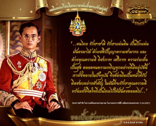 ด้วยพระมหากรุณาธิคุณที่พระมหากษัตริย์ทรงมีต่อพวกเราตลอดระยะเวลาอันยาวนาน ความจริงเป็นที่ประจักษ์แก่ปวงชนชาวไทย และชาวต่างชาติ ว่าทรงตรากตรำพระวรกาย เมตตาช่วยเหลือ ห่วงใยดูแลทุกข์สุขของปวงชนชาวไทยโดยมิได้หวังสิ่งใดตอบแทน ยากนักที่จะหาผู้ใดเสมอเหมือน แม้พระมหากษัตริย์ไทยในอดีตหลายพระองค์ทรงสละแม้ชีวิตออกรบแทนเราเพื่อกู้ชาติ เพื่อรักษาชาติของเรา หลายพระองค์ทรงพัฒนาบ้านเมืองให้ก้าวหน้าอย่างมาก บางพระองค์นำชาติให้รอดพ้นจากการเป็นเมืองขึ้นของต่างชาติ ช่วยให้ไทยเป็นไทยมาถึงทุกวันนี้